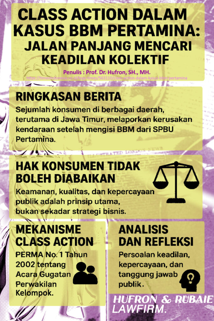 Artinya, jika terbukti ada cacat mutu atau kelalaian dalam distribusi BBM, maka tanggung jawab hukum ada di pihak Pertamina — tanpa perlu menunggu niat baik perusahaan semata.